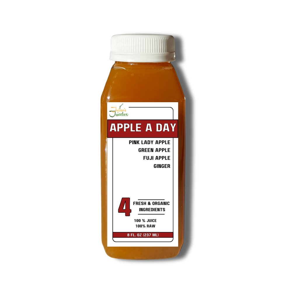 Sip on the crisp, refreshing taste of Apple A Day! This 8 oz cold-pressed juice blends organic Pink Lady, Fuji, and green apples with a hint of zesty ginger for a naturally sweet boost with a spicy twist. Packed with antioxidants, Vitamin C, and immune-supporting ginger, it’s the perfect daily pick-me-up to keep you feeling energized.