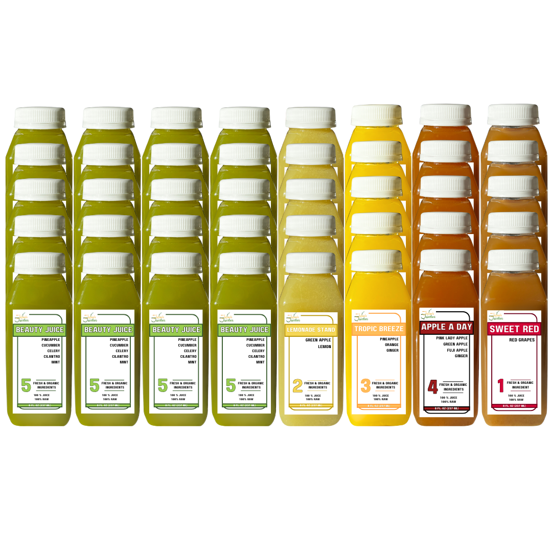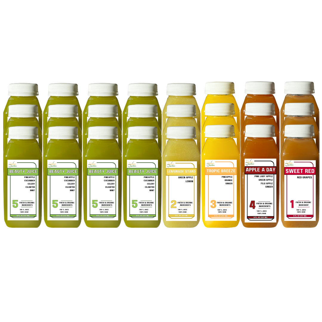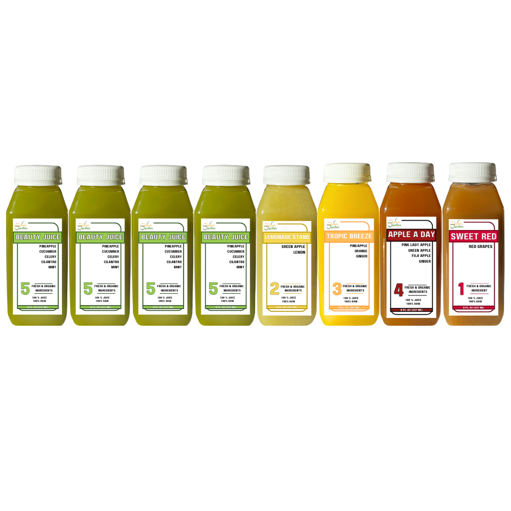 - Beauty Juice: Organic Cucumber, Pineapple, Celery, Mint, and Cilantro to hydrate, refresh, and support clear, glowing skin.