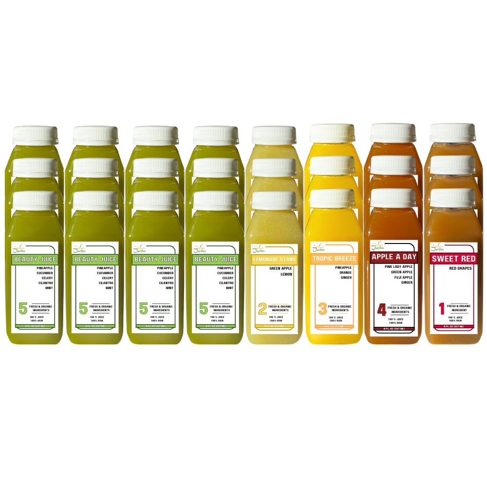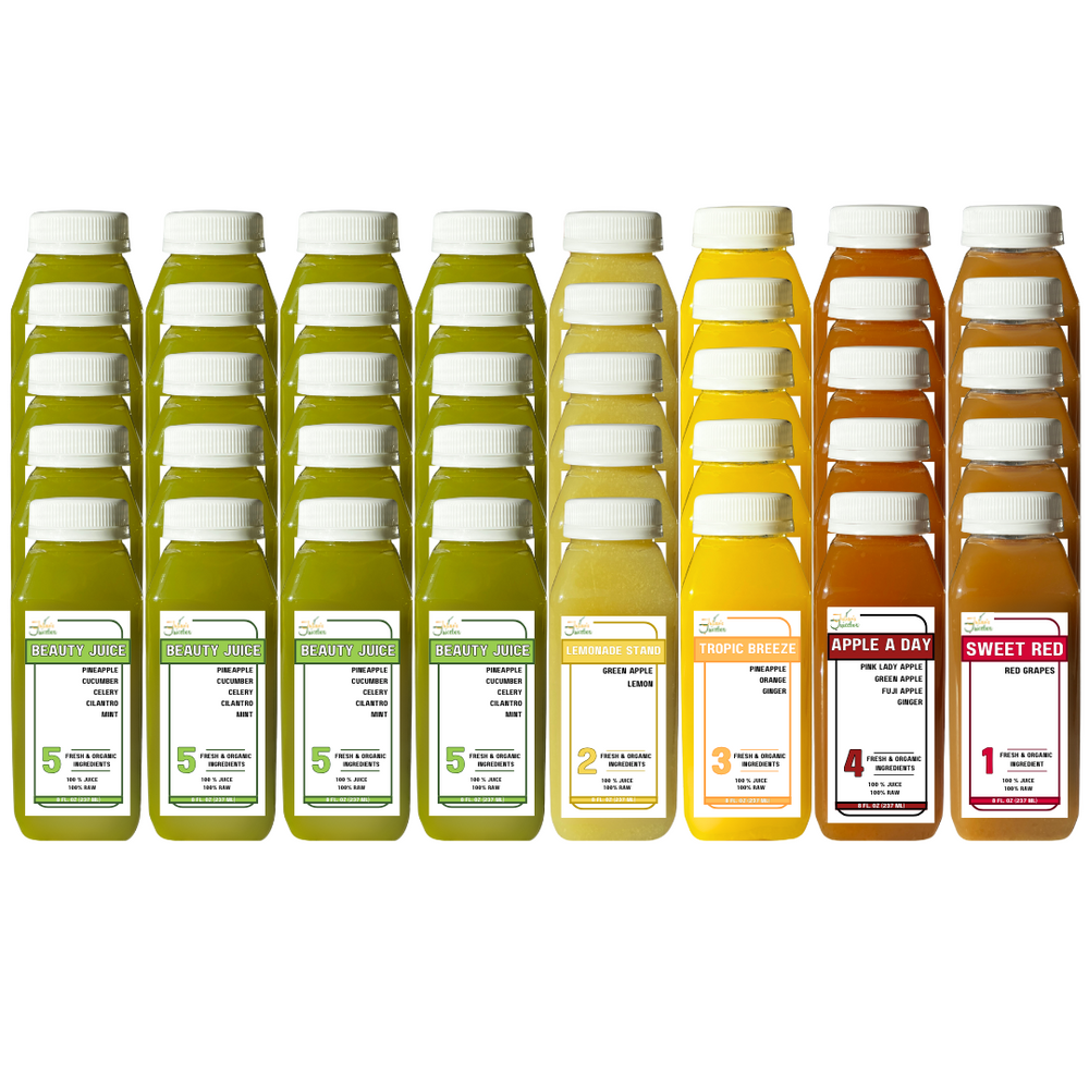 Glow from the inside out with our Beauty Cleanse — a refreshing mix of 8 oz cold-pressed Juices made with raw, organic ingredients that support radiant skin, strong hair, and healthy digestion. This cleanse is packed with hydration, antioxidants, and skin-loving nutrients to help you look and feel your best, naturally.