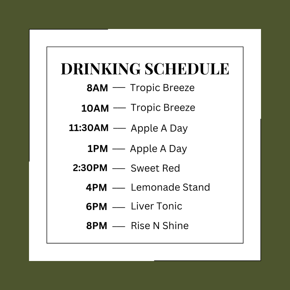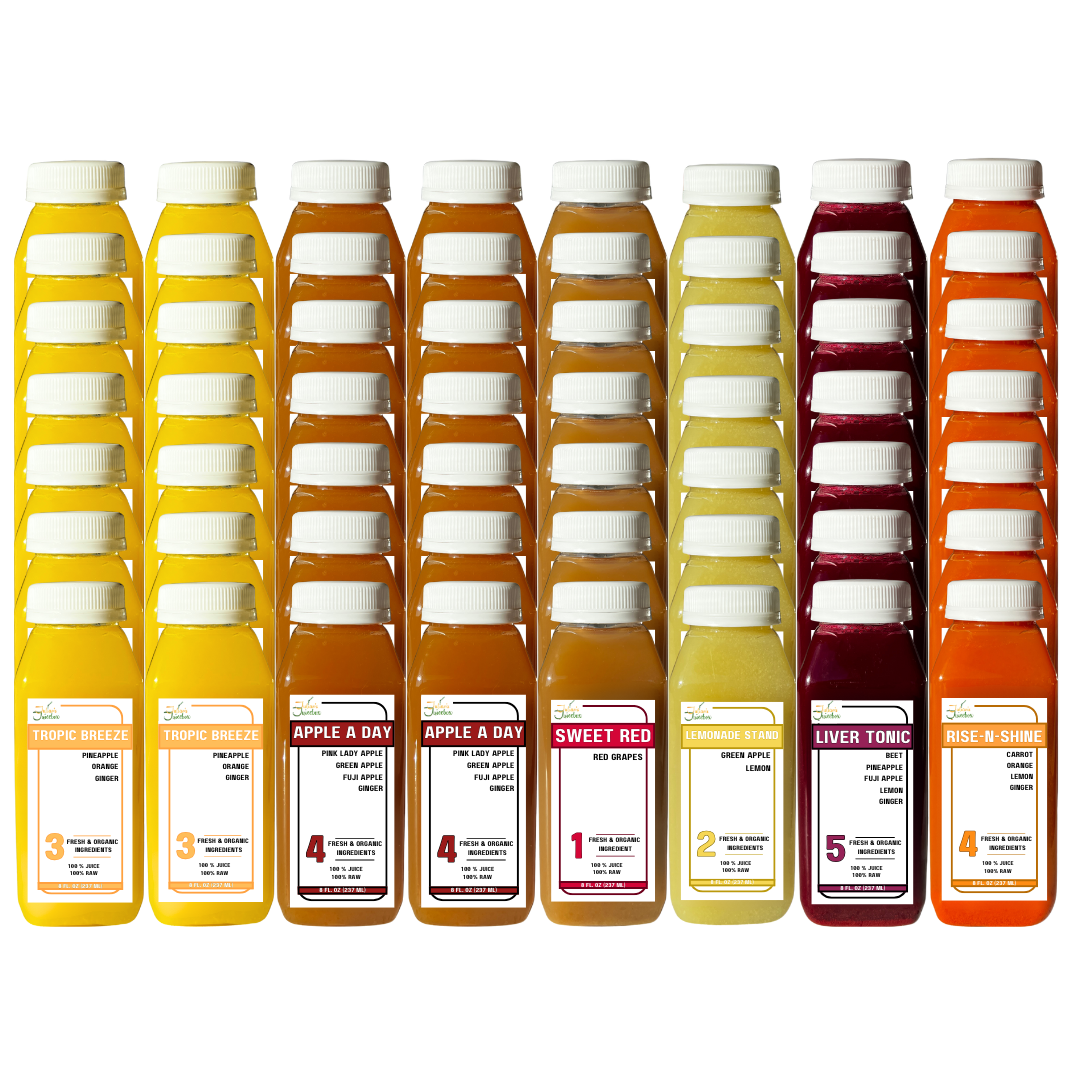 - Liver Tonic: Organic Beet, Pineapple, Fuji Apple, Lemon & Ginger to promote detoxification and metabolism balance.