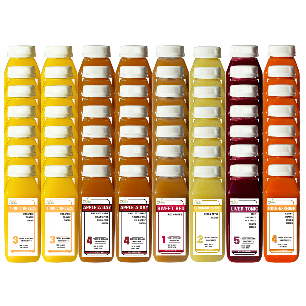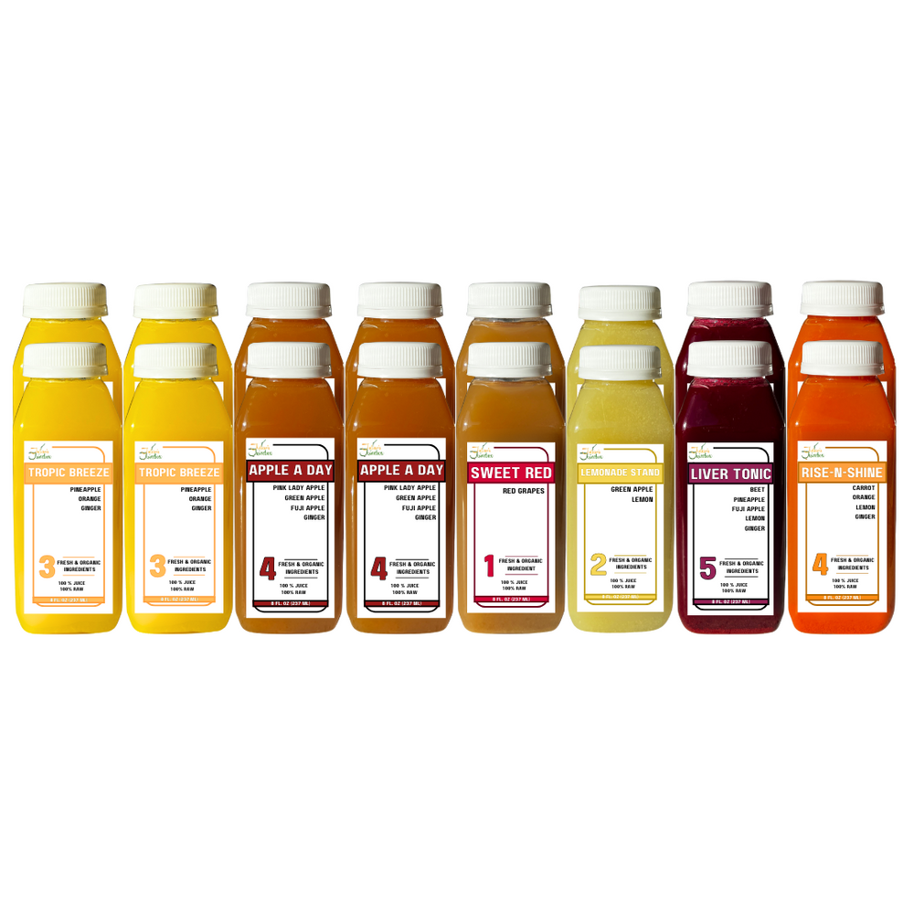 - Rise N Shine: Organic Carrot, Orange, Lemon, and Ginger to energize and awaken your system.